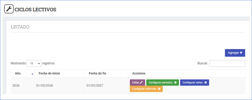 - Ciclos lectivos-Configurar Períodos