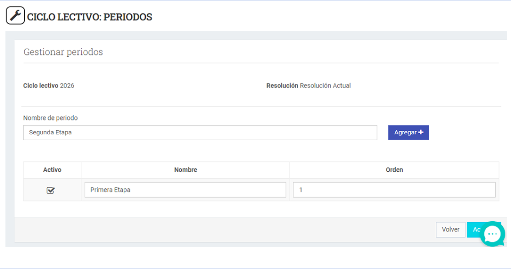 Ciclos lectivos-Configurar Períodos