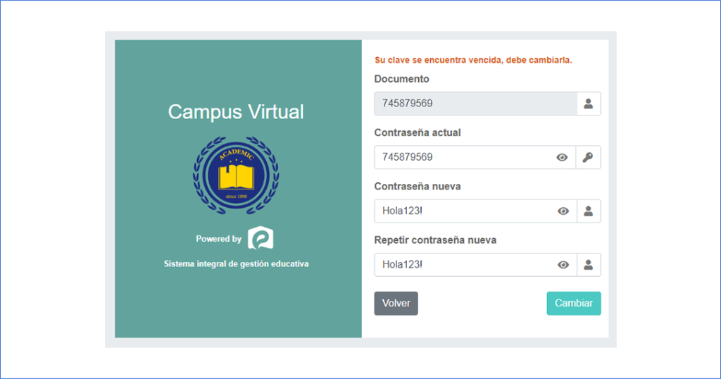 Una vez reiniciada la contraseña el usuario deberá ingresar el DNI como documento y contraseña y el sistema solicitará la generación de su clave.